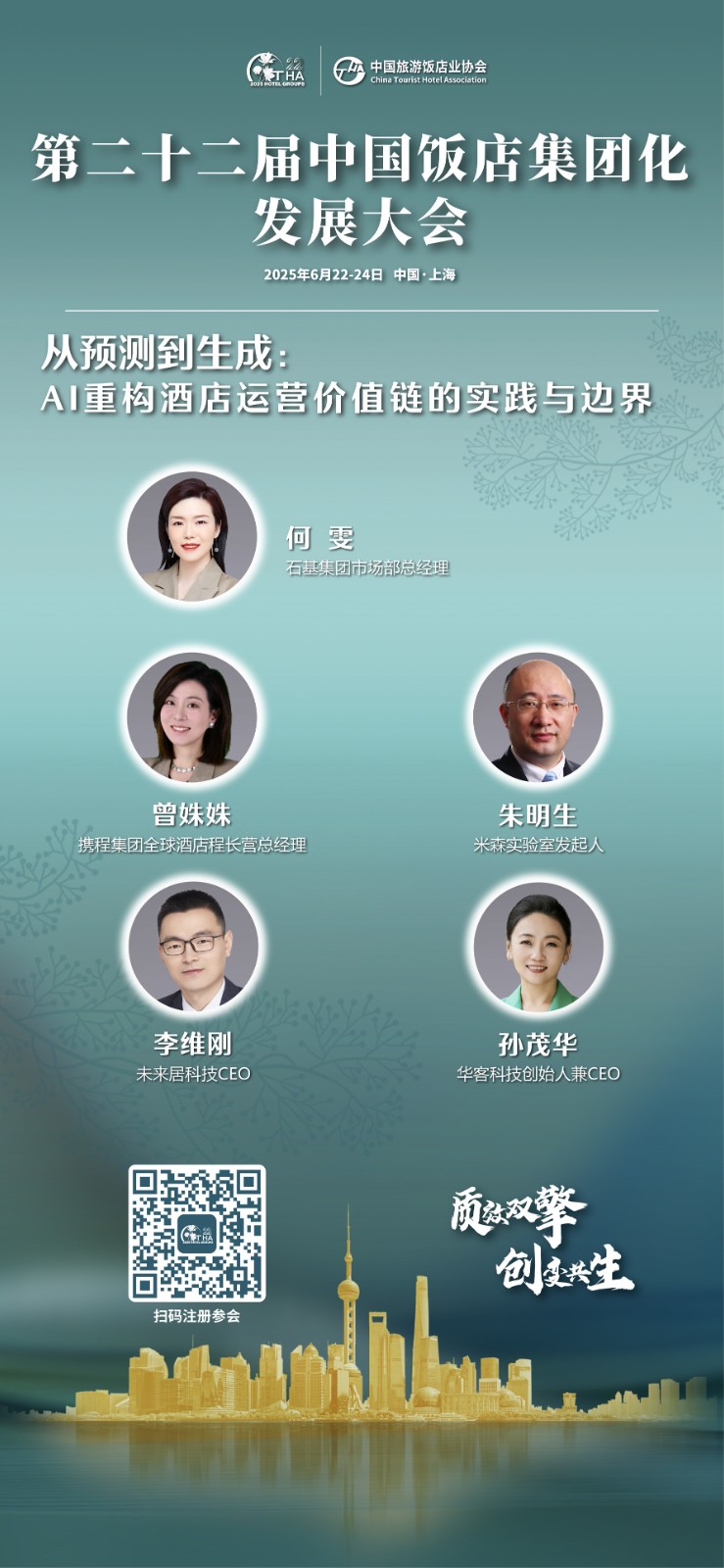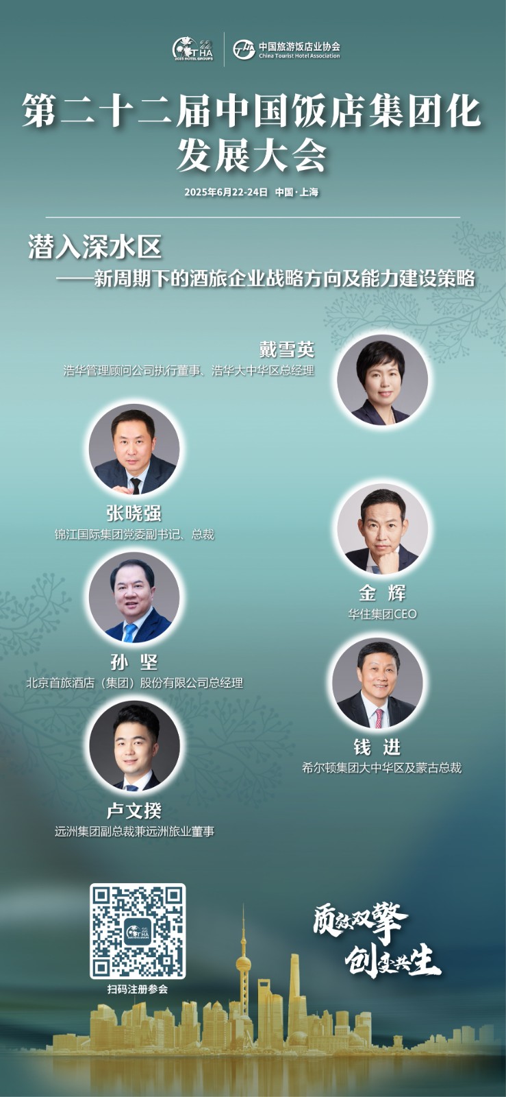 中国旅游饭店业协会主办的“第二十二届中国饭店集团化发展大会”将于2025年6月22日至24日在上海世博滨江大酒店召开。本届发展大会拟邀请政府领导、饭店集团领军人物、业界精英、投资人与管理者、饭店合作伙伴,主流媒体及各界嘉宾齐聚,共商饭店集团化发展大计,探索饭店集团做大做强之路。具体事项如下: