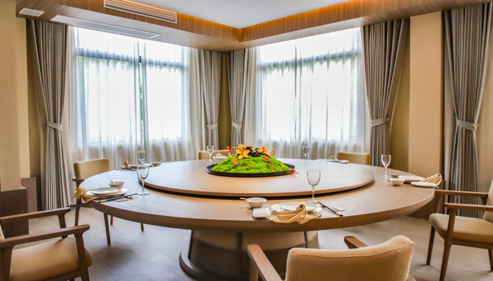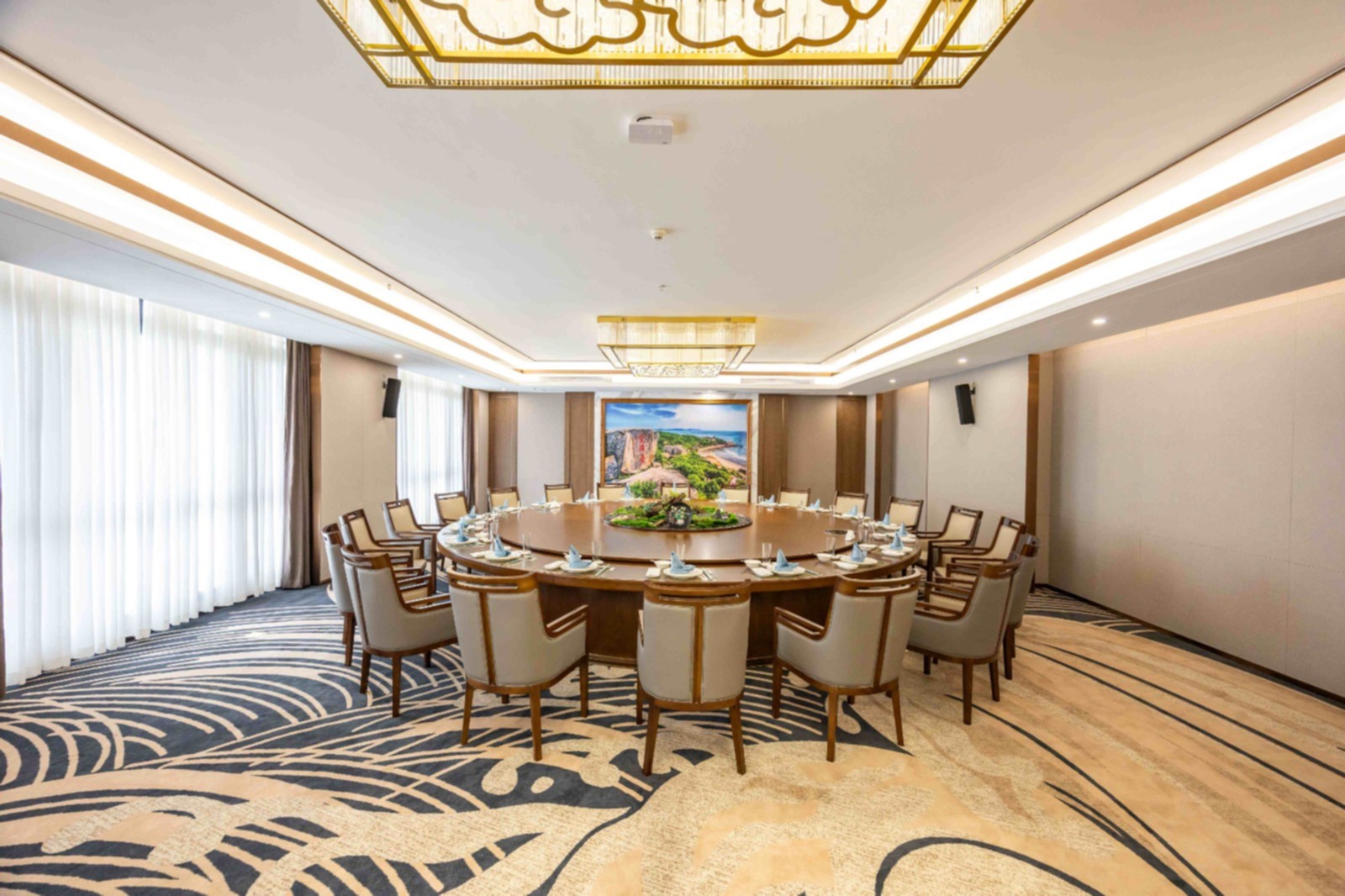 漳州凌波诏安酒店毗邻风景秀美的梅峰公园,将“人・建筑・自然”和谐共生的理念融入空间设计,打造可居、可游、可赏的“花园酒店”。酒店以“综合型全场景酒店”为核心方向,构建覆盖多元客群的服务体系,政务接待专业标准,商务服务高效便捷,度假体验沉浸融合,同时聚焦中高端婚庆与亲子主题市场。